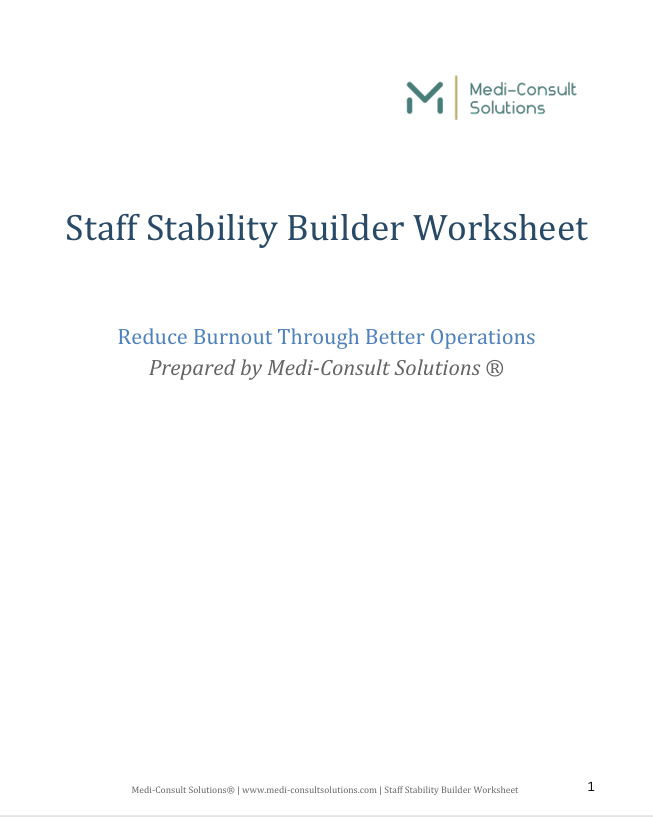 The Staff Stability Builder Worksheet helps healthcare leaders identify where operational gaps contribute to staff frustration and turnover.